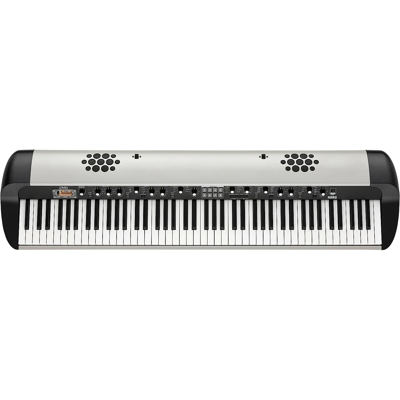 Never before has a single instrument captured the signature sound, the unique performance experience, and the aesthetic satisfaction of so many definitive keyboards as the KORG SV-2 Stage Vintage.Ten years ago, KORG launched the Stage Vintage line to wild acclaim. The combination of an intuitive live panel, the premier keybed, the ultimate realization of coveted vintage sounds, the clarity of world-class pianos, the warmth and character of period-proper effects, and the distinctively smooth shape has inspired musicians from around the globe for over a decade. Available with either 88 keys (this version) or 73 keys, these SV-2 models are the latest additions to the Stage Vintage series, featuring more of everything that makes an SV great. More sounds. More memory. More polyphony. More presets. More control. It is quite literally everything one could want in a performance stage piano … and more. Plus, be sure to check out the SV-2S models, equipped with an internal K-ARRAY speaker system.More. More. More.The SV-2 contains over ten times the sample data available in previous SV models, providing ample memory for many all-new piano and keyboard sounds. The SV-2 is home to 72 compelling sounds, and provides 64 memory locations to store edited Favorites for instant access during performance. Using the SV-2 Editor software, users are now free to create their own split and layered programs and save them to one of the Favorites locations. In fact, a single favorite can access up to three timbres at once—a piano/bass split with a layer of strings, for example. While user splits must be created using the SV-2 Editor, the split point on the keyboard can be adjusted directly from the front panel. Plus, polyphony of the SV-2 now stands at 128 voices, allowing more effective layering of sounds or sustained chording.Faithful Sound ReproductionThe SV-2 represents the pinnacle of audio sampling techniques and careful instrument preparation, delivering the most exacting and accurate rendition of so many keyboard classics. Using only the best-maintained instruments and the latest multi-miking methods, every sound has been captured as precisely as possible. The slap of the tine, the release of the hammer, the click of the contacts—every element is amazingly preserved in the RX Layer; mix in as much or as little of these authentic artifacts as you need. In addition, the full dynamic range of each instrument has been faithfully preserved, recreating all of the timbral and volume changes generated from a ppp (pianississimo) touch to an fff (fortississimo) strike—and everything in between. This detailed sampling regime creates a three-dimensional sense of presence, allowing the sound to fully occupy its place in the mix or in the performance space.Coveted ClassicsExperience a treasure trove of classic electro-mechanical, transistorized, tape-driven, analog and digital keyboard instruments, all reproduced with stunning realism. These sounds defined decades of popular music, and are now once again in demand. The SV-2 places all of these sought-after sounds right at the fingertips—in perfect tune and in impeccable playing condition—no maintenance required. It’s all here. Electric pianos now include nearly all the American tine and reed models, a Japanese electric grand, as well as a rare German electric piano. And then there all those clavis, created using a range of settings. Prefer electronic pianos? There are analog, digital, VPM, FM and sampled versions—including the ever-popular KORG M1 piano. Looking for organs? Select from tone-wheel classics; VOX combo, Italian transistor or American tube organs; and now church and cathedral organs. Need some strings? Choose from a ’70s-era analog string machine, prog-era tape strings or a warm orchestral section. Plus, the SV-2 contains mallets, brass and choir sounds, guitar and bass sounds, even solo and pad synths that are ideal for layering or creating convenient splits.Plenty of PianosThe SV-2 remains, at heart, a stage piano. At the touch of a button, you can summon the most outstanding grand piano sounds from around the world—including exemplary pianos from the leading German, Italian, Austrian and Japanese instrument makers. For a more intimate setting, choose one of the authentic Japanese or German upright pianos. Also included are a real honky-tonk piano and a genuine “tack” piano. Last but not least, the SV-2 contains two gorgeous harpsichords, one French, one Italian. Featured alone, layered with another sound, or split across the keyboard, these outstanding piano sounds deliver a strong foundation while delivering additional performance options.Seize ControlThe SV-2 invites you to take command of your sound. There is no LCD screen, no menus to dive through. Instantly inviting and familiar, the front panel is always live, so go ahead—grab a knob, rotate it, tweak it and experiment. Change your mind? Pressing in on the knob quickly restores it to the programmed value. Switches with LED indicators show which effects are active, transposition and more. Sounds are selected through a pair of rotary switches. Eight illuminated buttons in the center of the panel can quickly recall any of 64 Favorite presets, each containing your own customized sounds and settings. Best of all, the SV-2 now offers a Panel Lock function that prevents the accidental switching of sounds if the Favorites buttons are inadvertently touched while performing—and also prevents curious fingers from switching settings between sets. More detailed and convenient control is offered via the free SV-2 Editor software.Agility and ExpressionAll SV-2 Stage Vintage instruments share the finest KORG RH3 graded-hammer action keybed. As on a grand piano, the weighting of the keys is graduated across the keyboard; heavier in the lower registers and becoming lighter in the upper registers. This RH3 keybed is remarkably sensitive to the nuances of every performance, accurately delive