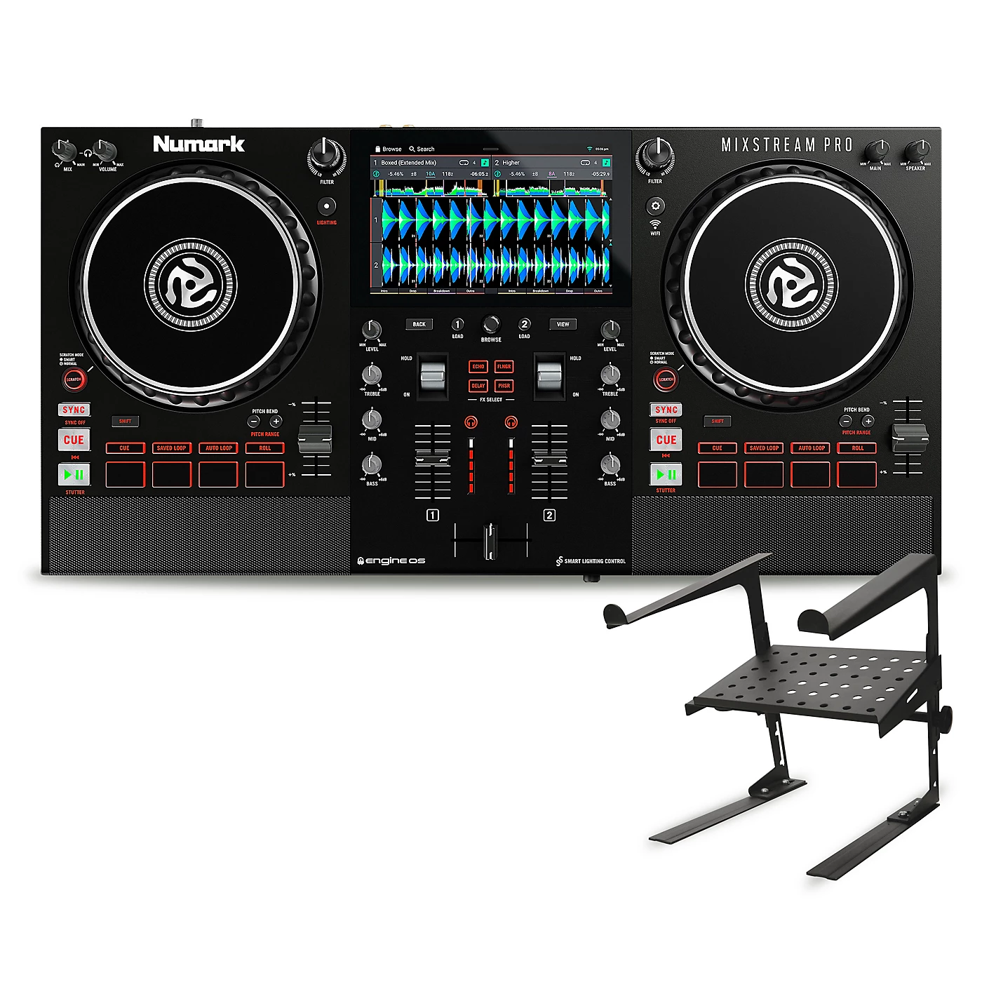 The Mixstream Pro allows DJs and music lovers to connect with their music like never before. With its built-in Wi-Fi, onboard high-quality speakers, and direct access to millions of streaming music tracks, the Mixstream Pro is ready for mixing, right out of the box. No laptop required. Playing songs from your existing library is also a breeze, thanks to the USB and SD Card inputs. When you’re ready to take your party, livestream or mix session to the next level, the onboard Engine Lighting control wirelessly connects to your smart home lighting for an automatic, high-energy lightshow. Plus, since the Mixstream Pro is powered by Engine DJ, its ever-expanding set of pro DJ features grows with your DJ career, giving you all of the performance essentials you need to rock any party or gig. It’s never been easier and more fun to connect, stream and play.ConnectWi-Fi | Philips Hue | DMXPlug into an entire universe of music with the onboard WiFi. Wirelessly sync to Philips Hue smart home lighting for on-screen control of beat-synchronized light shows and custom color selections. DJs can take things even further with never-before-seen onboard control over DMX lighting.StreamStreaming Apps | Personal Cloud | No Computer RequiredExperience the freedom of standalone streaming without the need for a laptop. Access millions of tracks from TIDAL, Beatport LINK, Beatsource LINK, Soundcloud GO+, and your personal Dropbox cloud. Tracks are buffered into internal memory for uninterrupted fun during your next party or gig.Play Engine DJ | Built-In Speakers | Pro DJ Features | USB/SD Card SlotsWith the Engine DJ embedded operating system, an ever-evolving set of pro-level DJ features are literally at your fingertips via the 7″ HD touchscreen. The USB and SD Card slots make it easy to access your current music library, and the high-quality, built-in speaker monitors let you practice and play whenever and wherever you like.