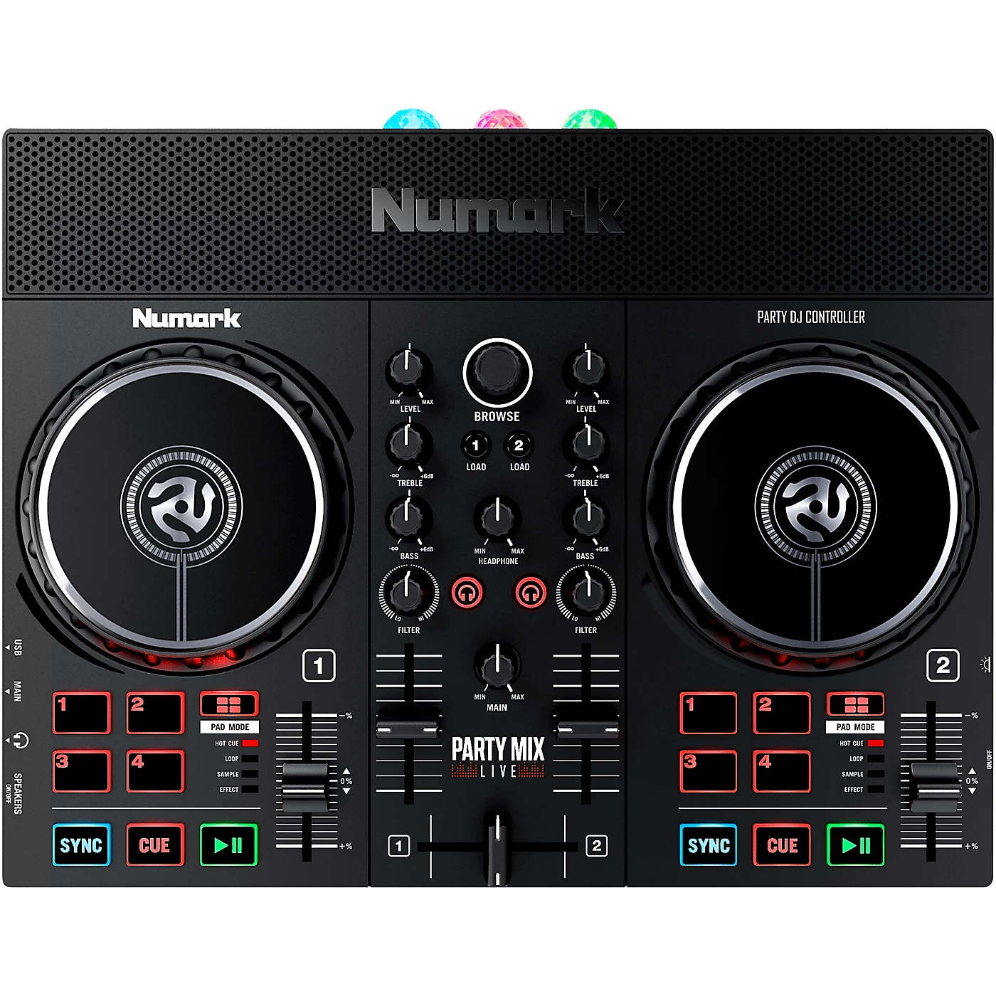 The Numark Party Mix Live is packed with all the features you need whether you’re new to DJing or a seasoned pro. Simply connect the Party Mix Live to your laptop or mobile device and mix your way through your ultimate playlist. Built-in speakers fill the room with dynamic sound and integrated LED lights create an unforgettable beat-synchronized light show. With Party Mix Live, every track is at your fingertips courtesy of the included Serato DJ Lite software with access to any existing library or on-demand access to streaming platforms like TIDAL, Beatport Link, Beatsource Link and SoundCloud GO.Four performance pads on each deck allow quick access to effects, cue points, loops or samples. Play, Cue and Sync buttons provide complete playback control and access to automatic tempo matching between tracks on each deck for perfectly aligned mixes. Large, touch-sensitive jog wheels allow you to pause, backspin and even scratch tracks as you work through your playlist. An outer jog-wheel functions as pitch-bend so you can nudge tracks into alignment for the perfect blend. With the Numark Party Mix Live, you’ll always be ready for a party.