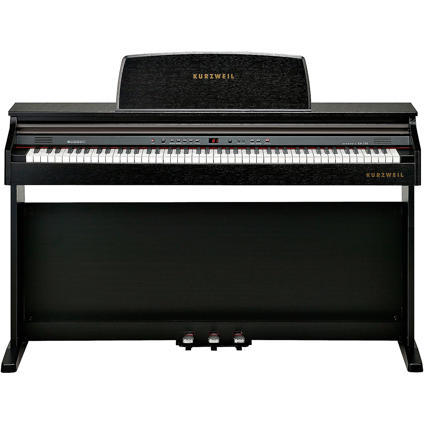 The simple and intuitive sleek control panel and clear display provide quick access to all system functions. The modern spinet-style cabinet in simulated rosewood finish rounds out the aesthetic appeal. The KA130 comes complete with 30 Watt, 2-speaker, stereo sound system, a built-in music stand and slide-out fallboard, plus Sustain (with half damper effect), Sostenuto and Soft Pedals standard.
