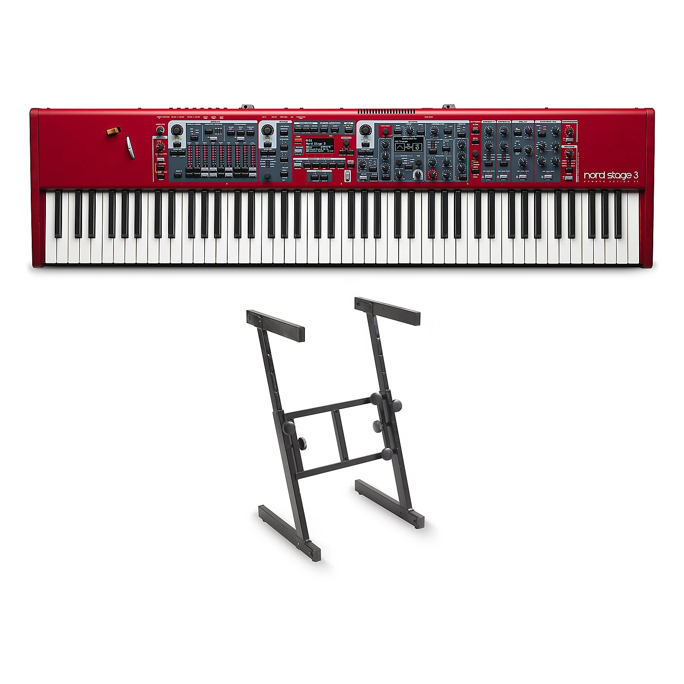 The Nord Stage 3 is the fifth iteration of the Stage series piano, a continuance of Nord’s vision of producing the ultimate instrument for the performing musician. The Stage 3 features Nord’s latest technologies including the Nord Lead A1 Synth Engine with sample playback, the Nord C2D organ, an enhanced Piano Section and extensive hands-on Effects. The Nord Piano Library and the Nord Sample Library can be downloaded in their entirety from the Nord website. The Nord Stage 3 comes in three models, which differ only in terms of their keybed and playing action. This is the Nord Stage 3 Compact with Nord’s top-of-the-line fully weighted hammer action piano keys. Key range A-C.The Nord Stage 3 Keyboard also comes with the ProLine PL700Z Folding Z Keyboard Stand. The ProLine Keyboard Stand supports up to 375 lb. and will accommodate electronic keyboards from 55 to 88 keys, or DJ equipment and music mixers. Heavy duty and height adjustable, the Z Keyboard Stand collapses and locks for convenient transport or storage.