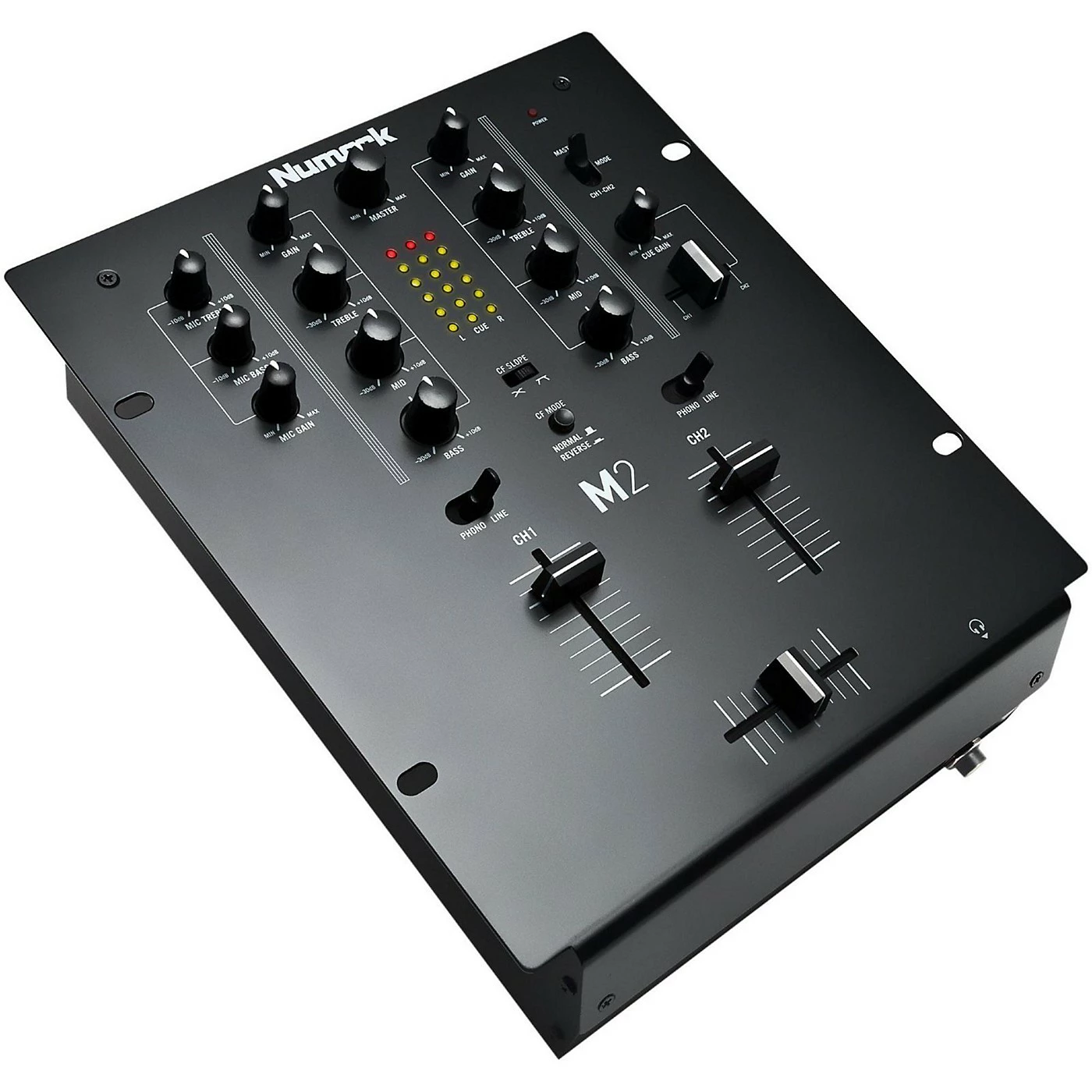 M2 is a 2-channel DJ scratch mixer with all the essentials to hit the stage in Numark style.Switchable phono/line inputs for turntables, CD players, and other line sources make M2 a superb choice for any DJ setting from weddings to clubs, parties to practice setups. A mic input with dedicated EQ and gain, and a headphone output with crossfader-style cueing complete the plentifully featured package.Three-band EQ on each channel plus crossfader-reverse and slope controls give you all the tools you need to drive your audience from behind the wheels of steel. M2 is the perfect mixer for any scratch DJ.