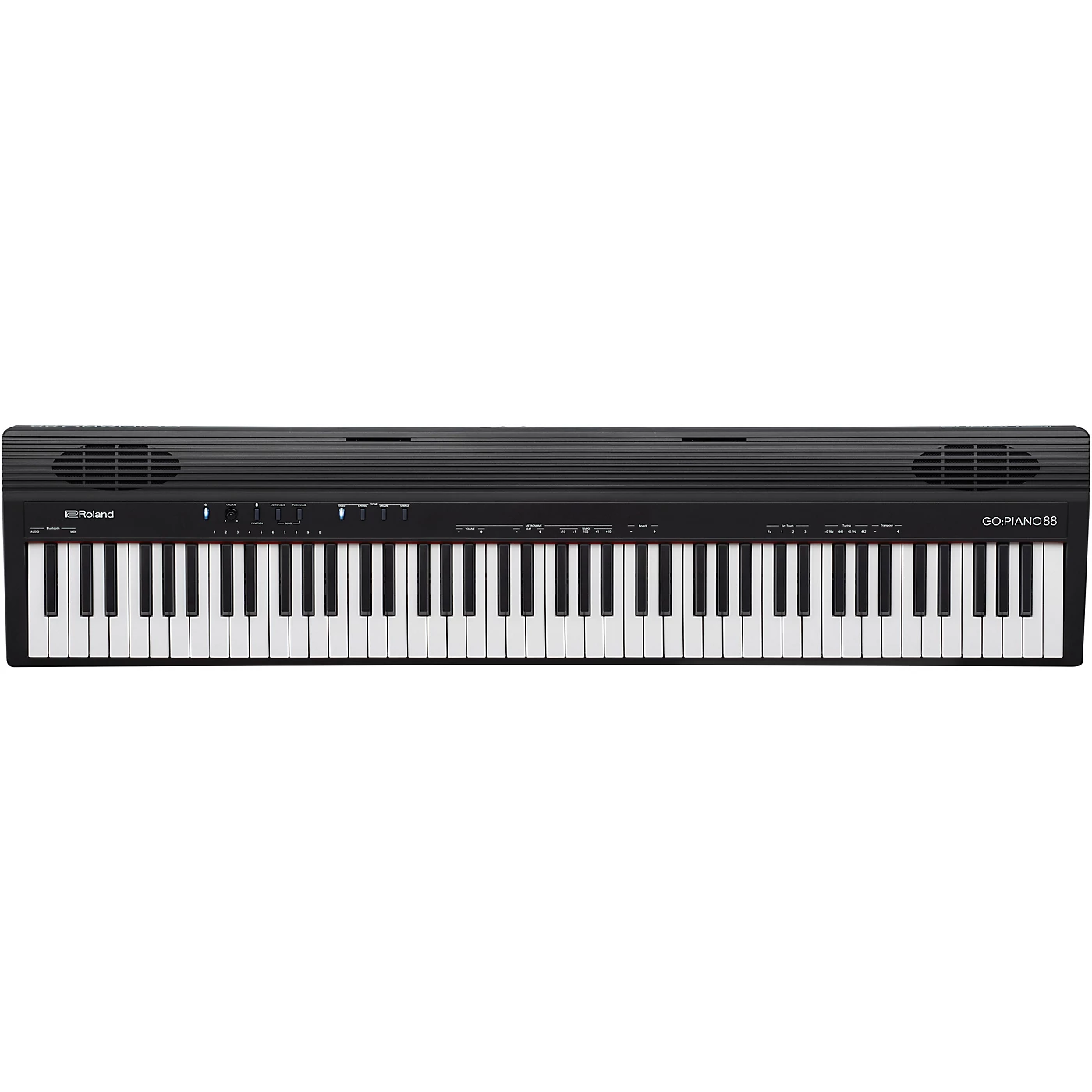 Most keyboards make you choose between performance and portability, but Roland’s GO:PIANO88 delivers equally on both fronts. Lightweight and road-ready, with optional battery power and headphones, this mobile instrument has a full-size 88-note keyboard and sounds derived from Roland’s best digital pianos. When you’re learning to play the piano, having 88 keys makes a bigger difference than you’ll ever know. Although smaller 61- or 76-note keyboards are portable and easy to handle for younger players, an 88-note full-size keyboard helps you develop the correct technique and become a more expressive player. It lets you play with the correct technique and expression – vital for classical music or more complex pieces. Roland has also outfitted the GO:PIANO88 with high-quality onboard Bluetooth speakers that hook up to your smartphone to create a simple and compact learning solution. Once connected, you can start exploring free online content that makes learning faster and more fun – including online piano lessons, karaoke and tutorial videos for your favorite songs. You can even just stream your playlists and jam along. Find a space, grab your smartphone, and start your musical journey with GO:PIANO88.Traditional piano feel with 88 standard-size keysAs stated above, GO:PIANO88 has 88 full-size keys which gives you authentic playing feel and expressive touch inspired by the keyboards on traditional acoustic grand pianos. Having the full range of notes lets you play more demanding music, and helps develop the correct techniques for both left and right hands. It also ensures a smooth transition should you ever get to play on a weighted hammer-action keyboard. And even if you invest in a premium piano, your GO:PIANO88 is the ideal portable instrument for taking with you anywhere in a gig bag for playing at rehearsals, sessions and even shows.Connect wirelessly to your smartphone, access online content and learn fasterLearning has never been easy for aspiring piano/keyboard players. GO:PIANO88 pairs with your smartphone to make learning piano fun. Use Bluetooth to connect wirelessly to your smartphone or tablet, then access songs from your music library or try some free online lessons. You can play along as the music streams through the high-quality onboard speakers or your headphones. Or, if you’d prefer some more intensive piano training, try some of the many excellent apps or tutorial videos, before you start working with a personal piano teacher.Enjoy authentic piano performance with a compact, space-saving footprintNot every home has space for a full-size acoustic piano. But the compact design of GO:PIANO88 lets you play in any setting, with all the benefits of 88 full-size keys. Just sit down, switch on and enjoy GO:PIANO88’s full dynamic range, free from setup hassles or tangled wiring. Plus, to ensure you can practice without disturbing others, GO:PIANO88 lets you plug in headphones to play in peace.Make music on the move with battery power and a wireless smartphone connectionAn acoustic piano ties you to one location, while portable electronic keyboards limit the type of music you can play as they have fewer keys. With GO:PIANO88 and a smartphone, you’re ready to make music whenever inspiration strikes. With its compact 7.5 kg design and battery-powered operation, GO:PIANO88 lets you perform through its speakers or practice with headphones. Plus, with wireless connectivity to your smartphone, you can work on your skills any time, any place – especially as the 88-note full-size keyboard means your technique won’t be compromised. Get inspired with Roland’s responsive piano soundsAs you appreciate GO:PIANO88‘s 88-note full-size keyboard, you’ll also be inspired by the choice of onboard sounds derived from Roland’s acclaimed premium pianos. Touch the keys and you’ll hear notes full of character, changing seamlessly in response to your touch, just like on a fine acoustic piano. And, alongside the expressive keyboard, GO:PIANO88 lets your dynamics playing style shine through, encouraging you to improve faster as your skills grow. GO:PIANO88 also includes electric pianos, organs and other sounds for exploring different musical styles.Get more from your practice sessions with onboard learning featuresRoland’s GO:PIANO88 helps you focus on playing with onboard tools to support your daily practice regime. Try the metronome to build your timing skills or experiment by transposing the keyboard to a different musical pitch. Use the onboard recorder to capture your playing and evaluate your progress. And when you’re ready, connecting your smartphone reveals a world of apps and tutorial videos. Create high-quality videos with your smartphone and GO:MIXER PROWith the 88-note keyboard and tuition features, you’ll soon be playing better than ever – and wanting to share your progress with the world. Although recording videos with your smartphone is easy, the built-in mic doesn’t always sound professional. Instead, try plugging your smartphone and GO:PIANO88 into Roland’s GO:MIXER PRO, to directly capture the great sound while you shoot. You can connect additional sources to GO:MIXER PRO as well, including a mic or another keyboard. With the combination of your smartphone, GO:PIANO88 and GO:MIXER PRO, there’s no simpler way to create pro-quality videos for sharing on social media.