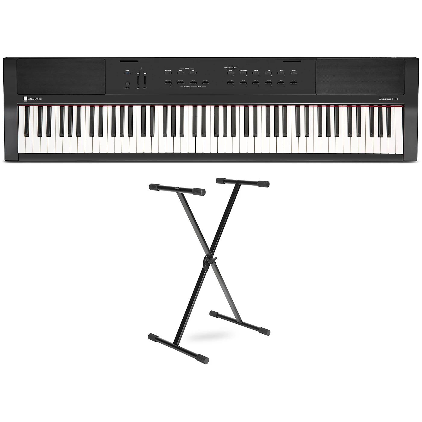 This introductory piano bundle gives you the Williams Allegro III paired with a keyboard stand for a ready-to-play package. The Williams Allegro III is an 88 weighted-key digital piano with superior sounds and breakthrough features that are ideal for the advancing student or the professional player who appreciates nuanced key control and high-quality sound. Taken from the Williams Custom Sound Library, it features 10 high-resolution sounds, including pianos, electric pianos, organs, strings and bass, recorded using the finest instruments in the world with full dynamic ranges.