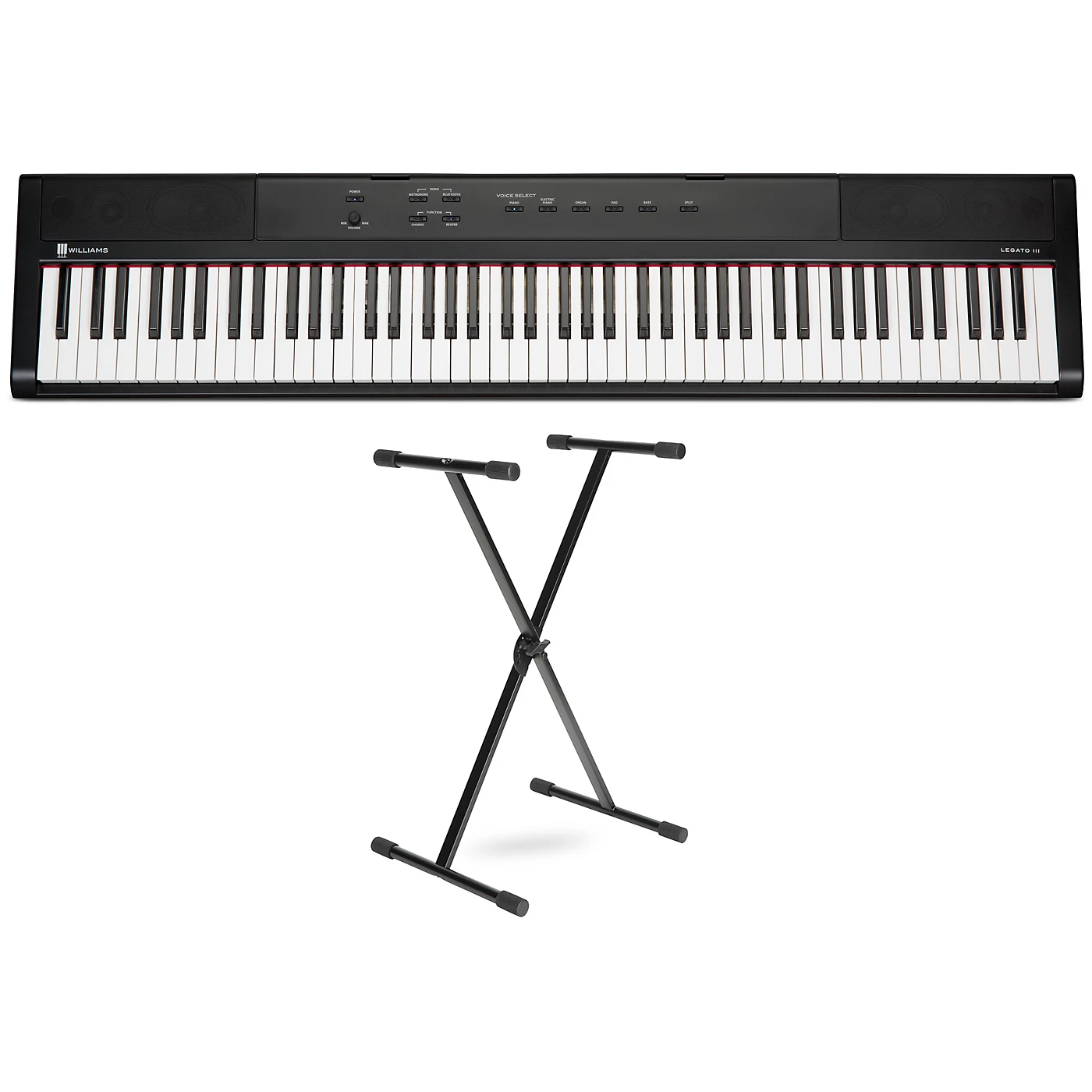 This introductory piano bundle gives you the Williams Legato III paired with a Musician’s Gear KBX1 single-braced keyboard stand for a ready-to-play package. The Williams Legato III is a full-size digital piano with 88 touch-sensitive keys, Bluetooth MIDI capabilities, iOS app and built-in speakers. More than just a great-sounding instrument for playing, practicing and performing, the Legato III includes sounds from the incredible Williams Custom Sound Library featuring a collection of impressive piano and vintage keyboards.