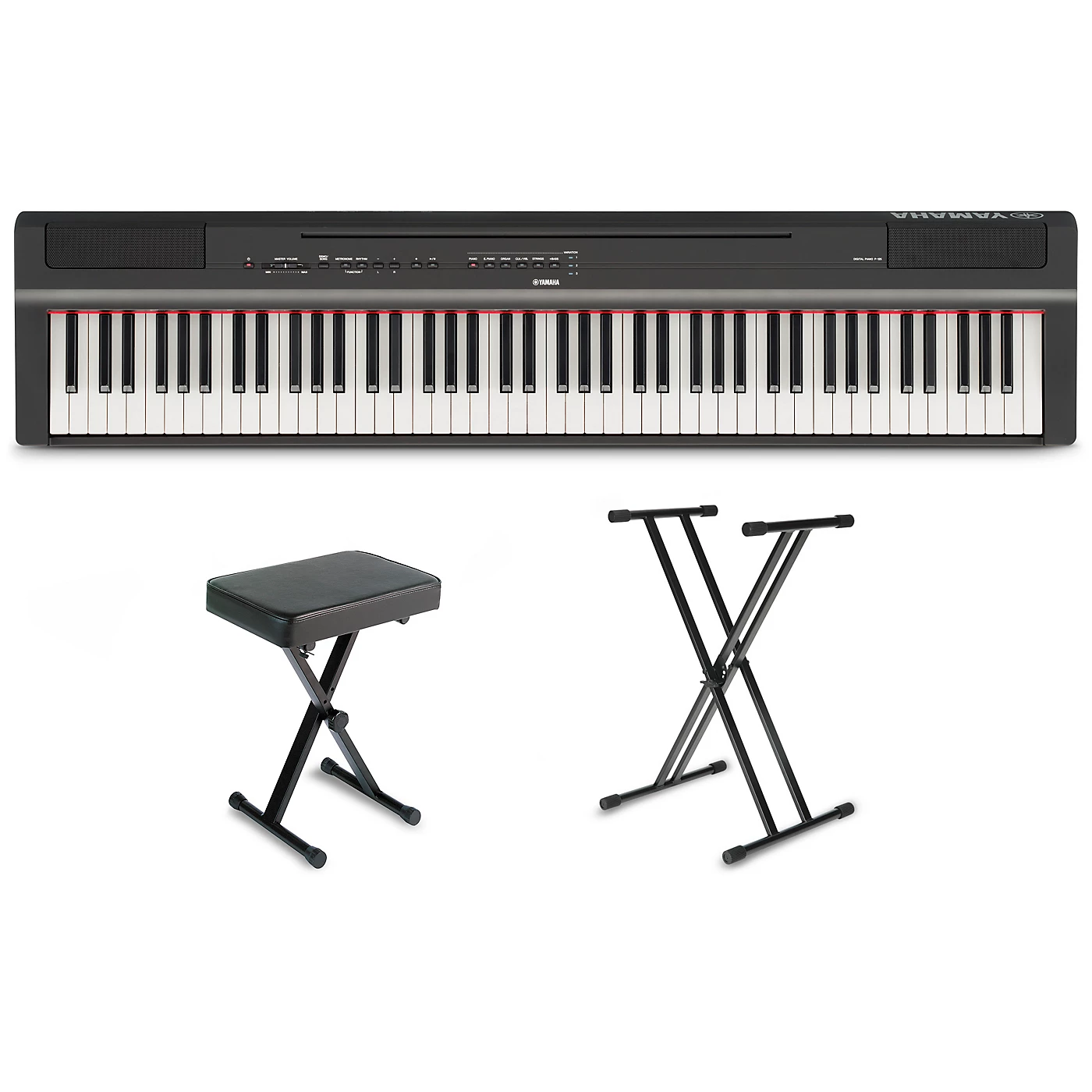 This package is put together with the motivated piano student in mind. It is centered around the Yamaha P-125A digital piano, and includes a variety of accessories that will assist in helping you improve on the piano. Along with the piano, you get the On-Stage KS8191XX Double-X Bullet Nose keyboard stand with Lok-Tight construction, PKBB1 keyboard bench, Musician’s Gear MG900 headphones, Hal Leonard key label stickers and a Proline Play Keyboards Today! Beginner’s Pack, complete with extensive instruction, 99 full-demo tracks and everything else a student needs to practice and develop as a player.